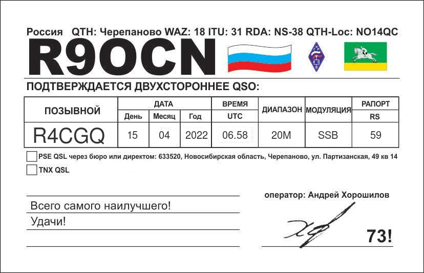 | R6LZ | 2023.12.17 | 09.58 | 15M | SSB | 59 | 59 |