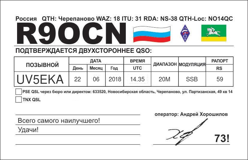 | UA4LB | 2016.07.31 | 06.20 | 20M | SSB | 59 | 57 |